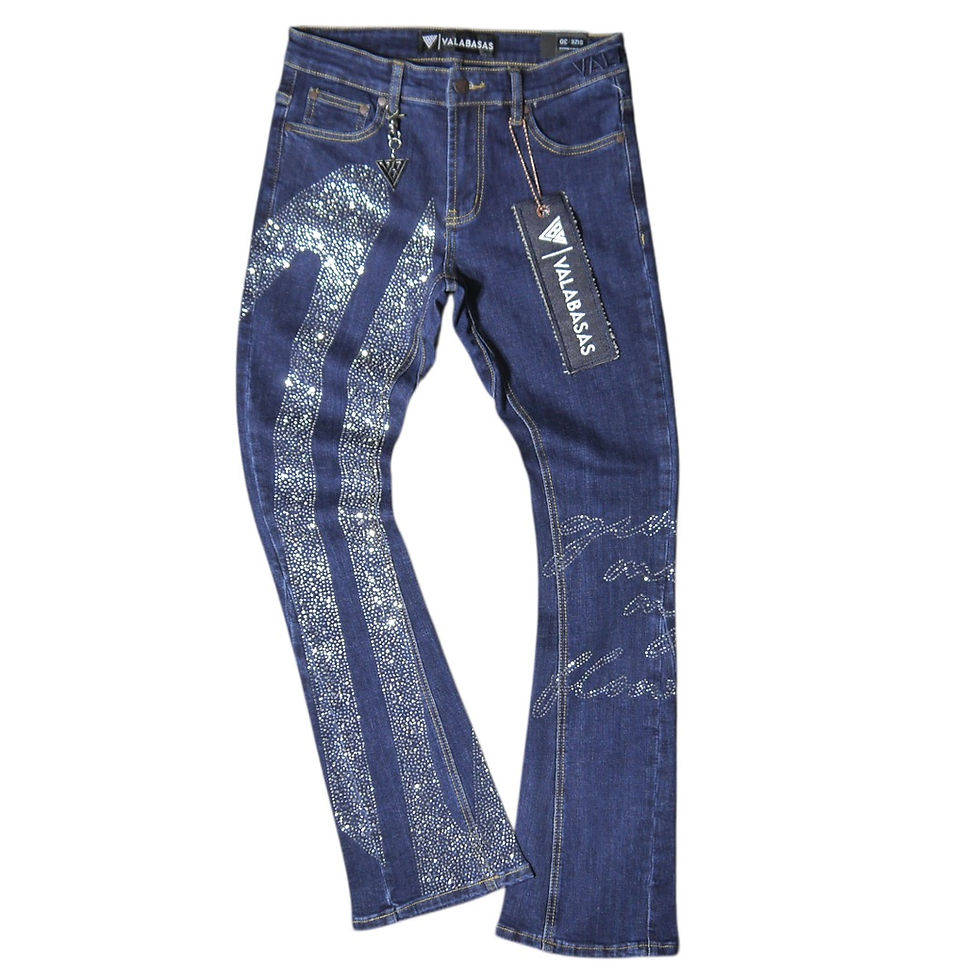 "VALABASAS" Script Flare Jeans (Indigo Blue)